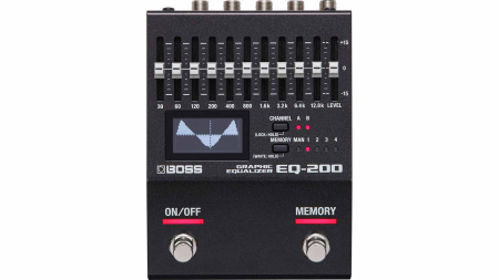 The EQ-200 is the most flexible compact EQ ever created for guitar and bass. It features two wide-ranging 10-band EQ channels, plus an onboard graphic display that shows the current EQ curve at a glance. Selectable signal flow structures configure the channels for stereo, parallel, or series operation, and it’s even possible to patch in external pedals for deep pre/post tone shaping. Going further, the frequency centers of all 10 bands can be set to three different types, letting you optimize the EQ-200’s performance for different instruments.