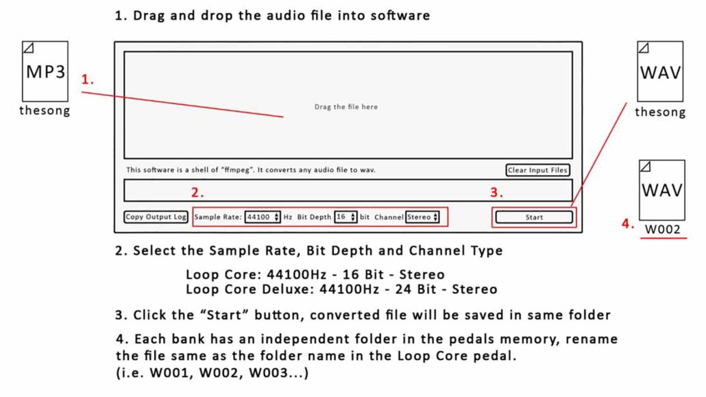 You can convert any audio file to make it compatible for Loop Core Deluxe. You can download the Nux Audio Converter software free. (Check the support page)