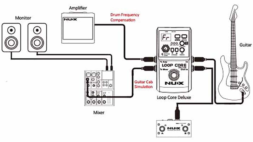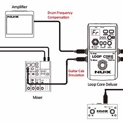 To ensure the exact tone you desire, Loop Core Deluxe is designed with frequency compensation for drums and a cabinet simulator. Both are utilized through the stereo output Jacks.