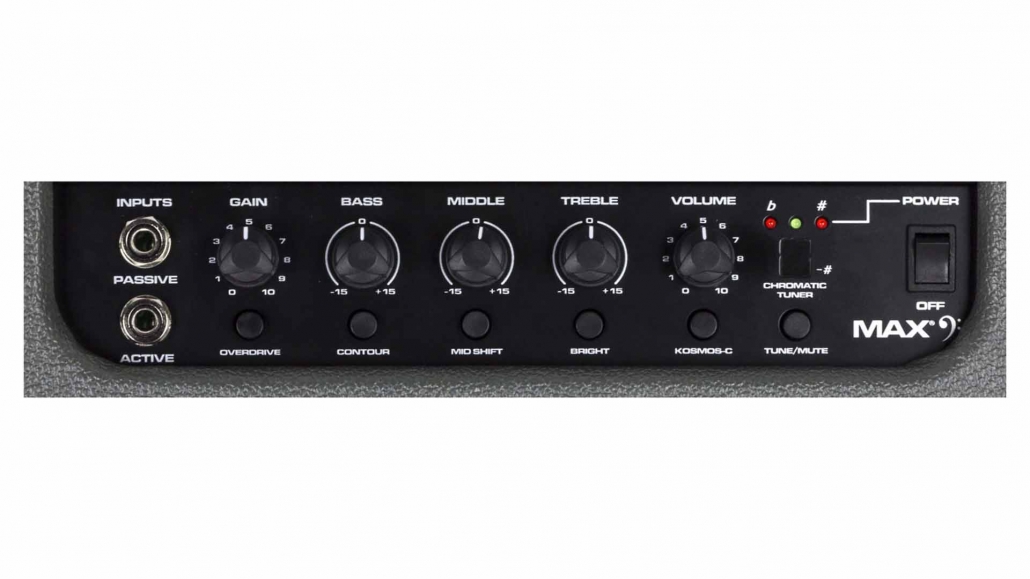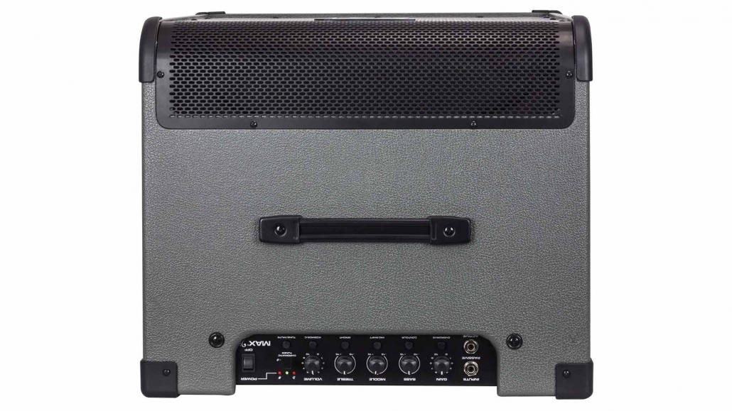 The MAX also features a built-in chromatic tuner with mute, a tuned and ported enclosure, 1/8″ headphone output and 1/8″ auxiliary input. The amp also includes an XLR direct output with ground lift, as well as a built-in tweeter.