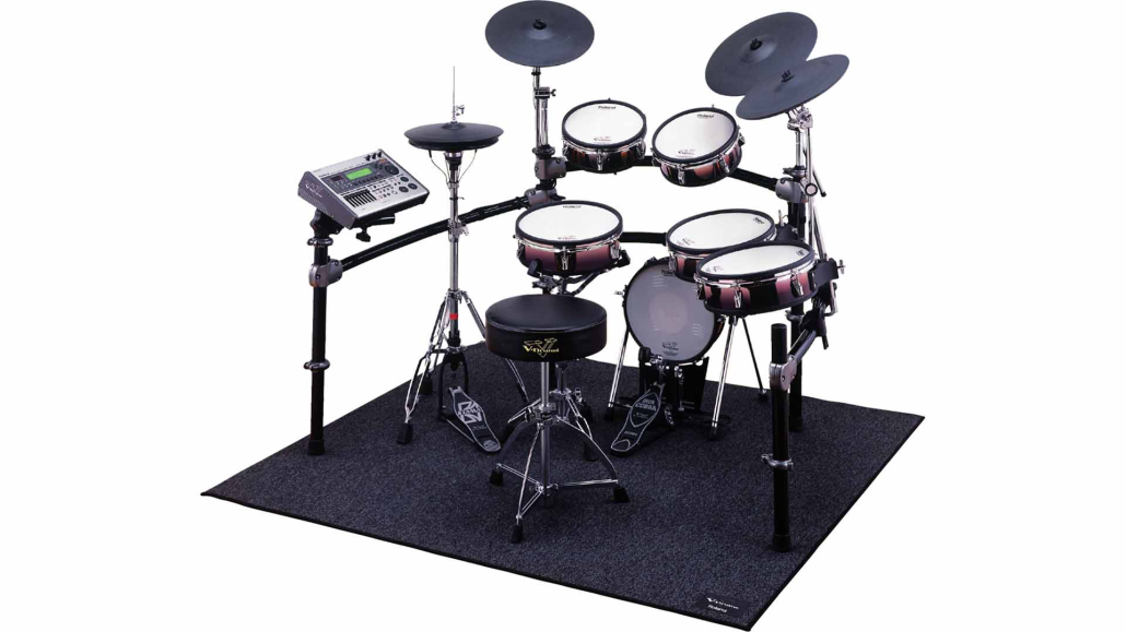 Prevent your drum components from slipping while simultaneously safeguarding your floor from scratches and reducing impact noise/vibration. Roland’s new TDM-10 and TDM-20 heavy-duty drum mat is adorned with the Roland V-Drums logo. The mat is available in medium (TDM-10) and large (TDM-20) sizes.