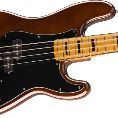A tribute to the 1970s evolution of the P Bass®, the Classic Vibe ‘70s Precision Bass embodies the aesthetics of the original and produces massive tone courtesy of its Fender-Designed alnico split-coil pickup. Player-friendly features include a slim, comfortable “C”-shaped neck profile with an easy-playing 9.5”-radius fingerboard and narrow-tall frets as well as a vintage-style bridge with threaded saddles. This throwback Squier model also features 1970s-inspired headstock markings, rich-looking nickel-plated hardware and a slick vintage-tint gloss neck finish for an old-school vibe.